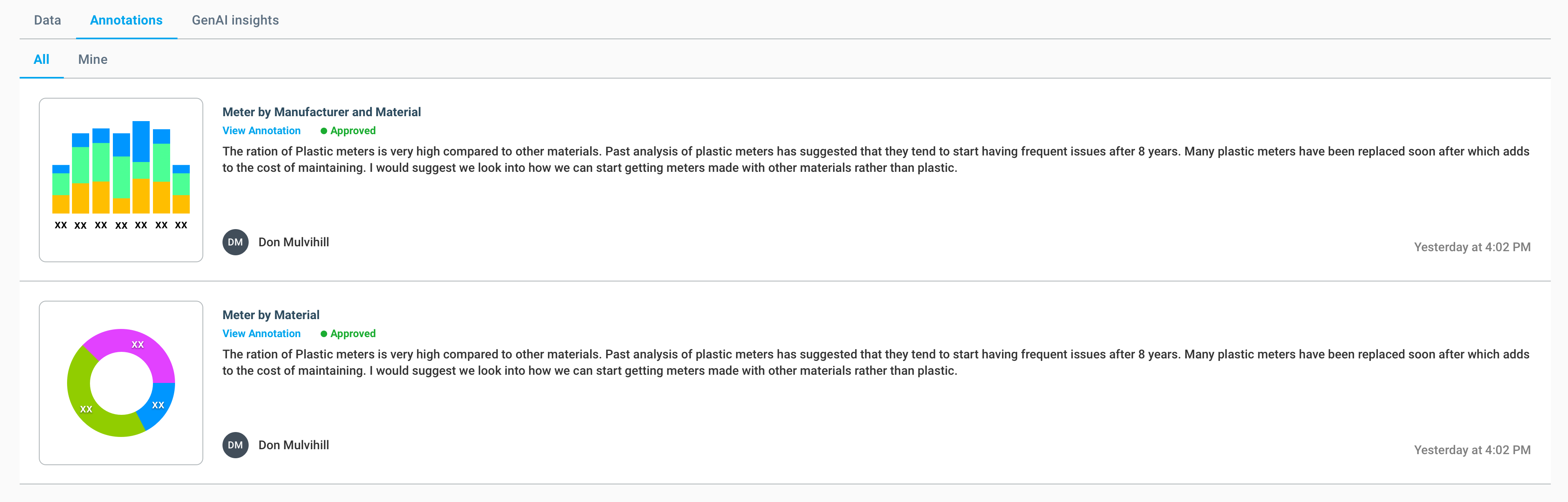 Annotations - shows any annotations that have been added for the App by either All users or only the current user (Mine). See Annotating Data.