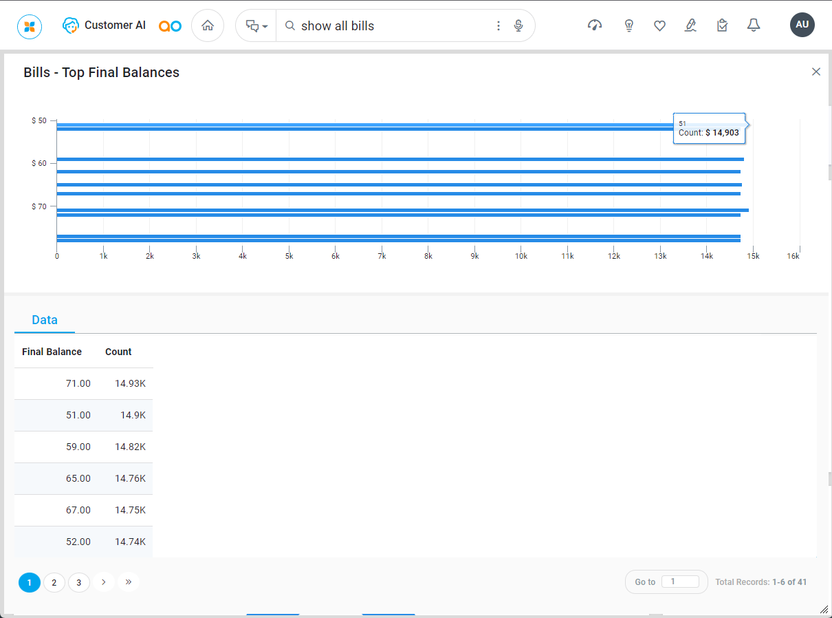 The Easy Answers Question, when executed, will produce a Results page of one or more Apps that present the data requested. The user can interact with the Apps and the data on the Apps.