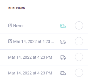 The first item is in Draft, the second item is Published, but a new Draft is being edited, the third/fourth items are Published (with no active Drafts).